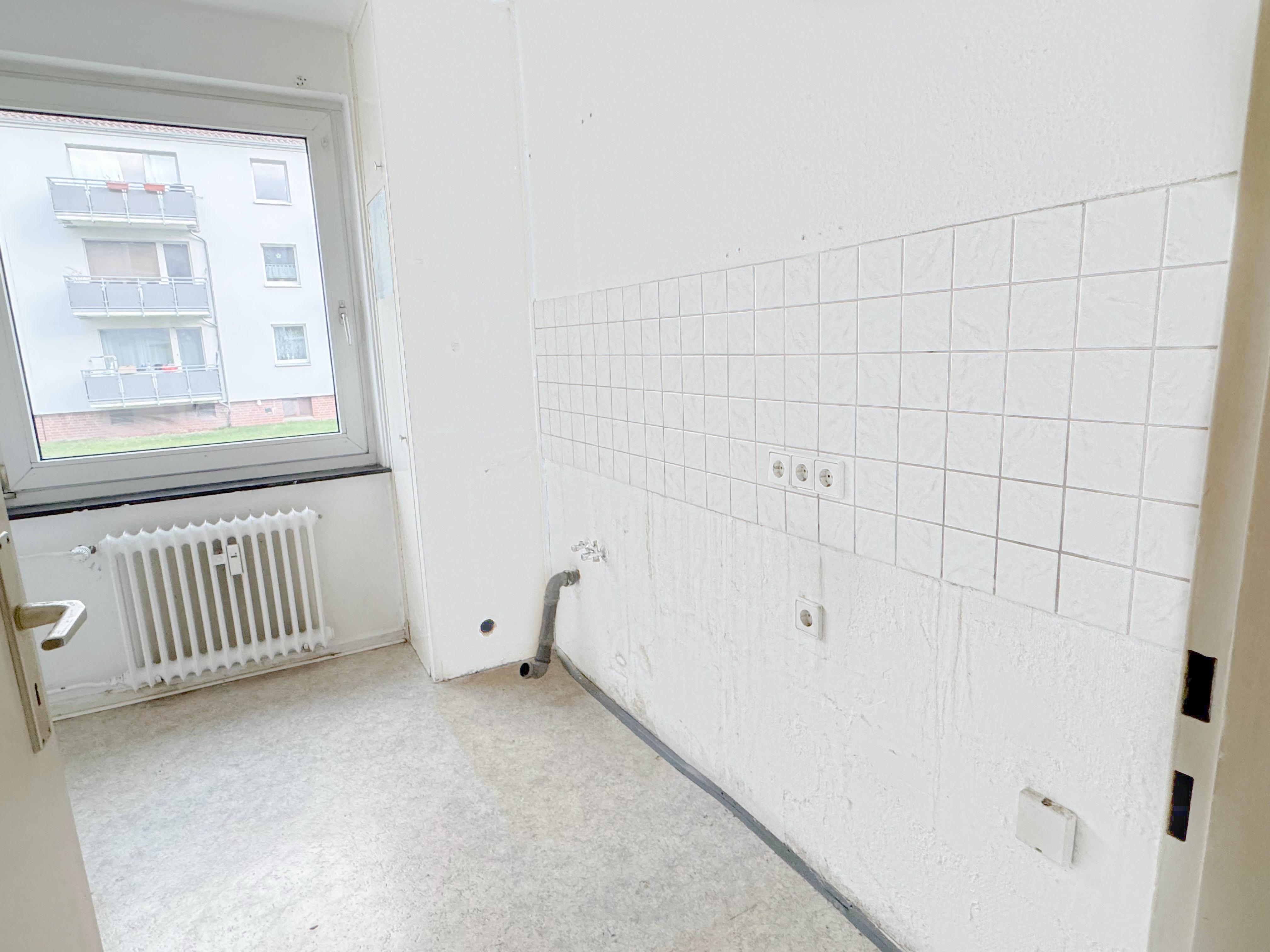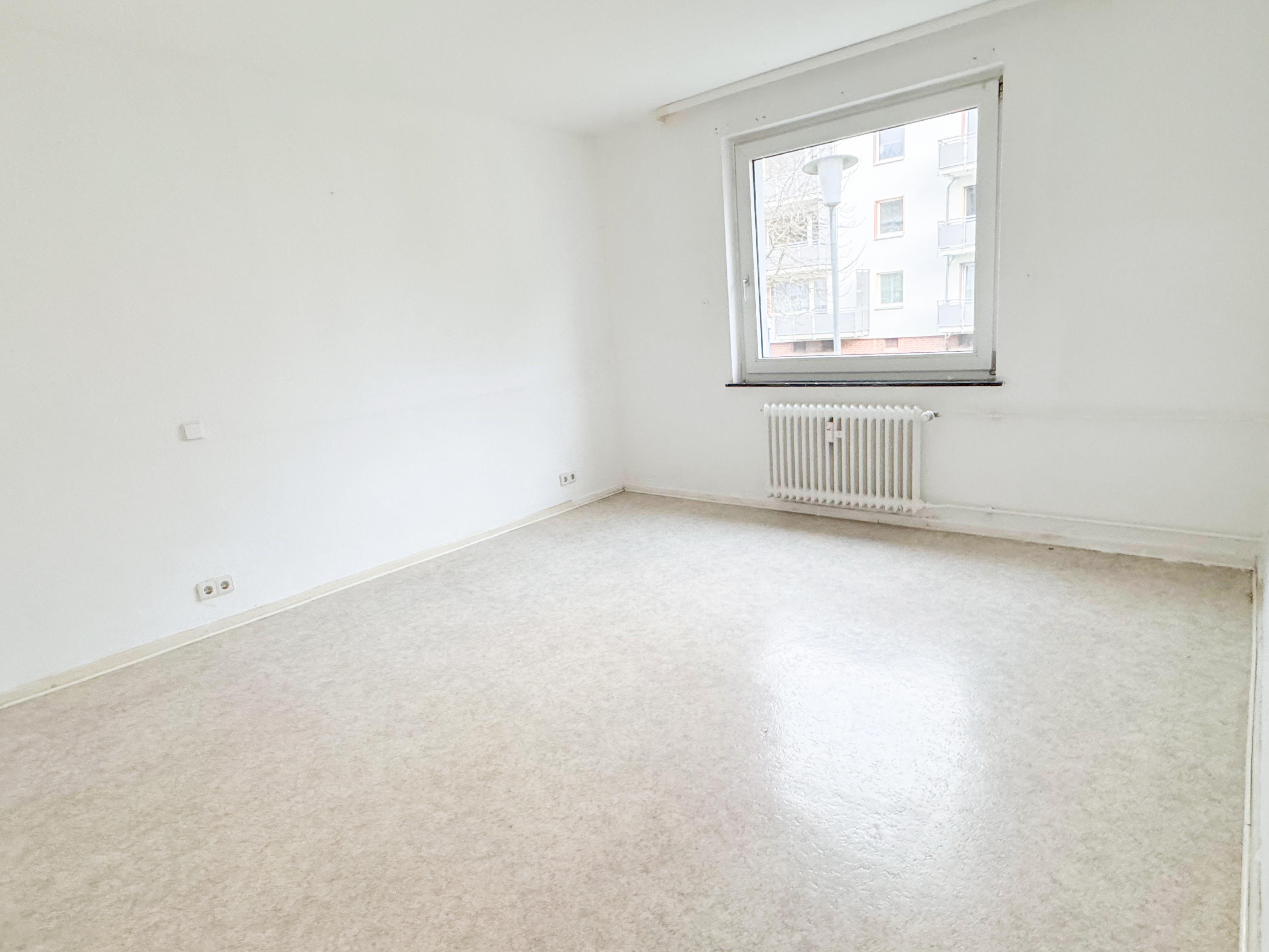 Das neu sanierte Badezimmer mit großem Fenster sorgt für Tageslicht, gute Belüftung und ein modernes Wohlfühlgefühl. Der Wohnbereich bietet ausreichend Platz zum Entspannen, während das separate Schlafzimmer Rückzug und Ruhe garantiert.